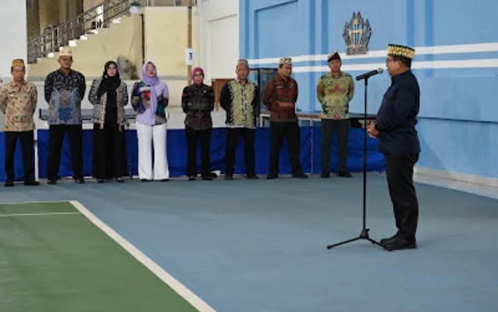 Bandar Lampung — Pj. Gubernur Lampung, Dr. Drs. Samsudin, S.H., M.H., M.Pd., menjadi Pembina Apel Pagi di lingkungan Badan Pengelolaan Keuangan dan Aset Daerah (BPKAD) Provinsi Lampung. Kegiatan ini dihadiri oleh seluruh pegawai BPKAD dan dilaksanakan di Gedung Olahraga Green Sport Tenis, Kamis (9/01/2025),