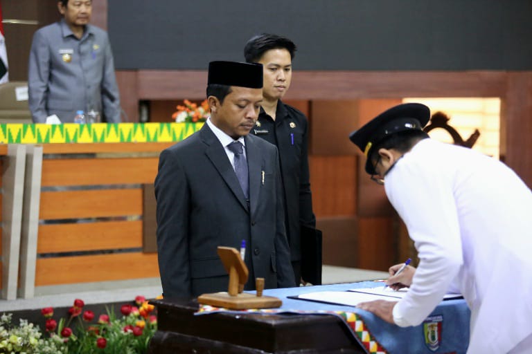 Prosesi pelantikan di Aula Utama Pemkab Pringsewu, Kamis (5/6/2025), yang diiringi pembacaan ayat-ayat suci Al-Quran beserta saritilawah dan terjemahan dalam Bahasa Lampung oleh perwakilan pejabat yang dilantik ini merupakan yang perdana dilakukan Riyanto Pamungkas sejak pelantikannya sebagai kepala daerah pada Februari lalu.