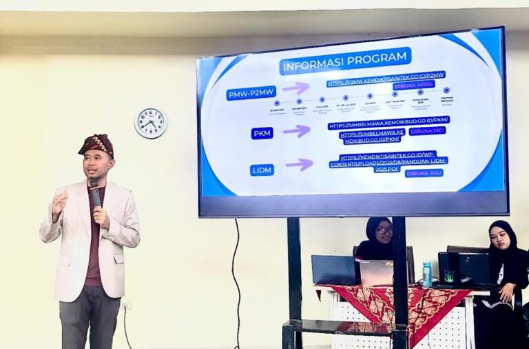 Selain PKM, Dr. Bayu Saputra memaparkan potensi besar bagi mahasiswa FKIP untuk mengikuti program kompetisi berkelas nasional yang diselenggarakan oleh Direktorat Pembelajaran dan Kemahasiswaan, Direktorat Jenderal Pendidikan Tinggi, Kementerian Pendidikan Tinggi, Sains, dan Teknologi.