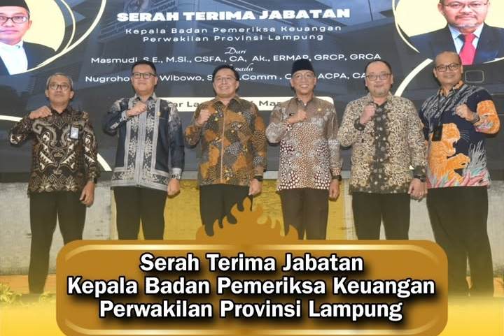 Serah terima jabatan disaksikan langsung oleh anggota V BPK RI H. Bobby Adhityo Rizaldi, Dirjen Pemeriksa Keuangan Negara V Widhi Widayat serta Ketua DPRD Provinsi Lampung Ahmad Giri Akbar.