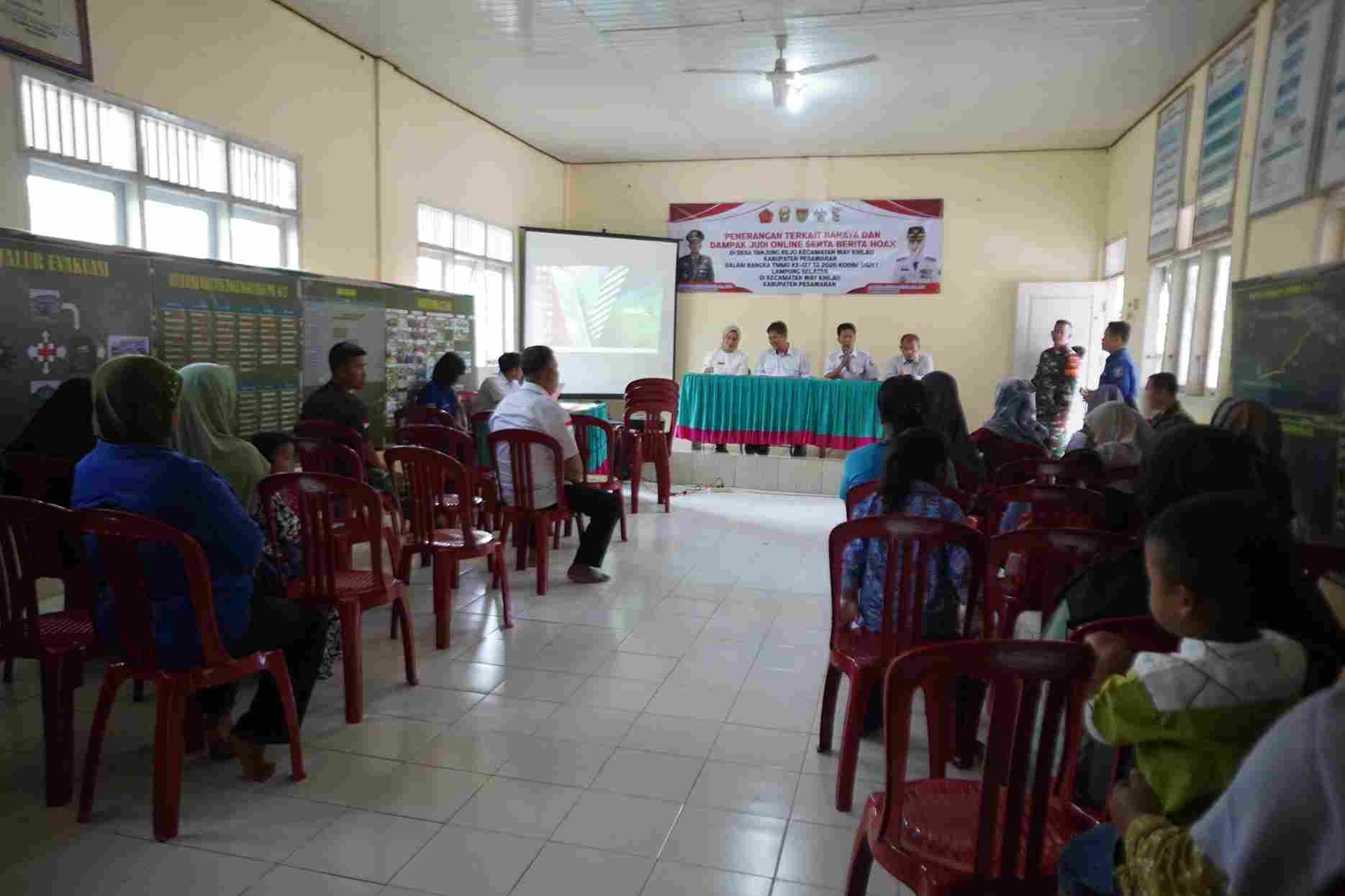 Pesawaran – Selain pembangunan fisik, program TMMD Kodim 0421/LS juga menggelar penyuluhan kepada masyarakat Desa Tanjung Rejo, Kecamatan Way Khilau, Kabupaten Pesawaran, terkait bahaya judi online dan penyebaran berita hoaks di media sosial, (25/2/2026)